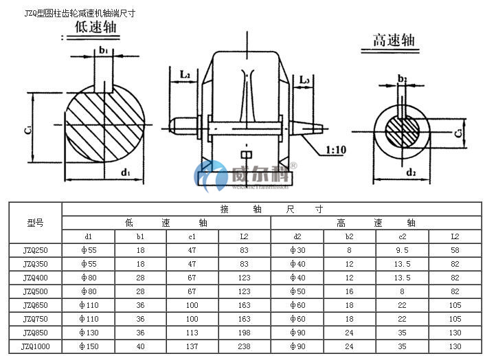 JZQ齒輪減速機(jī)應(yīng)用范圍及結(jié)構(gòu)概況 1、應(yīng)用范圍及優(yōu)點(diǎn): 本機(jī)廣泛應(yīng)用于各種起重、運(yùn)輸、礦山機(jī)械及其它各種機(jī)械中作減速之用。其聯(lián)動(dòng)方式,可用聯(lián)軸器直接聯(lián)動(dòng),也可用三角皮帶撓性聯(lián)動(dòng)。 本機(jī)通用性和互換性強(qiáng),維修簡單,效率系數(shù)為0.94,具有起動(dòng)阻力小,運(yùn)動(dòng)靈活等優(yōu)點(diǎn)。 2、結(jié)構(gòu)概況及主要零部件: 本機(jī)結(jié)構(gòu)型式為兩級三軸圓柱斜齒水平分割全封式。潤滑油盛于減速機(jī)之內(nèi)部,在主動(dòng)軸和中間軸上設(shè)有擋油板,各軸支點(diǎn)均用滾動(dòng)軸承,其軸向間隙,可用內(nèi)部調(diào)整環(huán)調(diào)整之,本機(jī)上部有一檢查蓋,下部有油標(biāo)指針和排廢油用的油塞。